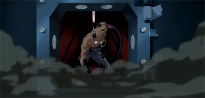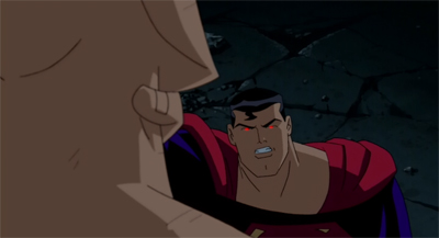 Of course, the other great dynamic of the episode is the team-up between Luthor and Brainiac, which is constructed in such a way that it actually makes a lot of sense. The show always made great use of internal continuity, and Divided We Fall has roots going as far back as the Ghost in the Machine episode of Superman: The Animated Series. The revelation that Brainiac “seeded” himself inside the captive Luthor works so well that it’s hard to believe it wasn’t intended by the creative team from the start, actually making logical sense of a minor plot hole in the original. “Consider,” Brainiac teases Luthor, “how could you have survived a point-blank blast from me…? Unless…”