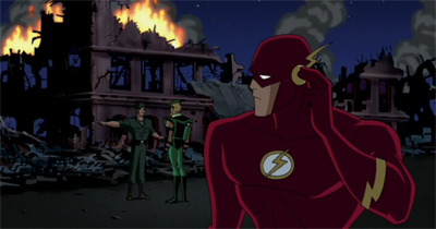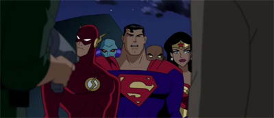 There’s a lovely little scene featuring Batman and Luthor. While the animation illustrates how far we’ve come from Batman: The Animated Series – Batman doesn’t look that impressive any more throwing a batarang – I’ve always liked the idea of Bruce Wayne and Lex Luthor interacting. They work as perfect foils for one another – they’re both prometheans, relatively ordinary human beings living in a world of gods and super-humans. Both are successful business men, and neither trust the Justice League entirely. (The irony of course, that Lex is such a hypocrite he’d happily trade his much-lauded humanity for a shot at the Justice League.)