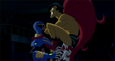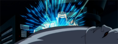 Still, this is really just a side show, and it’s a rather stunning one, carefully executed by Dan Riba. It has a delightful kinetic quality. While I’m not a fan of the more streamlined animation of the later shows – I prefer the “rougher” quality of Batman: The Animated Series – I will concede that the Justice League style lends itself to more fluid and impressive action sequences. It all looks quite brilliant, and it makes for a solidly entertaining half-hour of super hero fisticuffs.