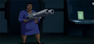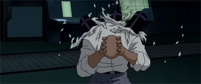 As nice as that sequence is between Lex and Batman, Waller gets even better interactions. CCH Pounder is a fabulous voice actress, and I’m glad she played such a major role in Avatar. Her Waller is brilliantly matter-of-fact, dead-panning the most wonderfully ridiculous lines. Awesome. “Hey, Luthor. That android is Cadmus property. You’re going to have to find somewhere else to keep your brain!” When Luthor complains it’ll take him weeks to repair the damage she’s done, she replies, “You ain’t got weeks, baldy!” Anybody calling Luthor “baldy” immediately earns my respect.