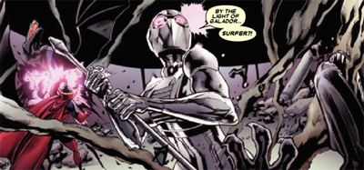 “A far greater and more troubling challenge faces us,” the Surfer remarks, a proclamation he could utter at least twice an issue. It’s important to ensure that there are high stakes, but the miniseries never quite lets us emotionally invest in one particular threat before the next one appears. It really makes me appreciate the space given to crossovers like Annihilation or War of Kings to tell their stories, instead of trying to cram everything into a tight little miniseries.