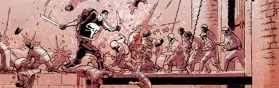 Remender plays with this idea. He allows the Hood to resurrect a bunch of already-dead C-list villains so that the Punisher can murder and kill with impunity during the arc. (“That’s the trouble with the geeks,” Castle laments. “They never stay dead.”) It’s a clever storytelling device, and it seems like Remender is at least being relatively up-front with his audience about what he can and can’t do. There’s no real fake-out or attempt to push or suspension of disbelief. Remender never tries to convince us that Frank will definitely kill Wilson Fisk or anything of that magnitude. It’s an honest approach that I admire.