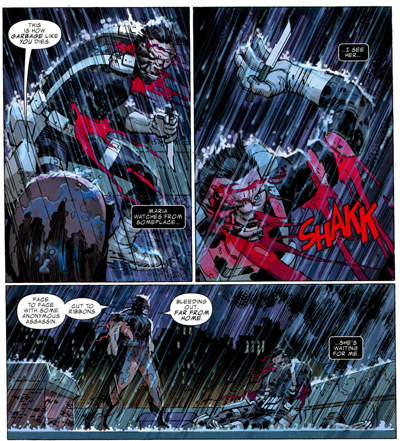 I also find Frank’s confidence that he’ll see Maria again to be somewhat confusing. Frank knows that there is a heaven and a hell in this shared universe. (After all, he worked for God for a while.) “I’ll be home soon, baby,” he promises Maria. “One last thing needs doing.” Does Frank think that, after all he’s done, that he’s going to heaven? Remender seems to borrow a page from Garth Ennis when it comes to Frank’s appraisal of his own morality: Frank just sees himself as the last to be punished. Confronting Daken, he rejects the idea that the villain killed him. “Didn’t kill me, boy. You were just the gun I used to shoot myself.”
