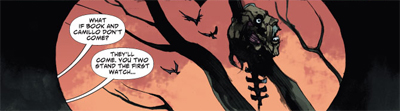 Sweet is a monster. I don’t mean because he has fangs or drinks blood, just because of who he is. He’s a harsh man, perhaps tempered by the Wild West, perhaps by a harsh upbringing, perhaps by pure random chance. There’s something of the grotesque monsters of American history in the way Snyder and King offer us Skinner Sweet, calling to mind the sort of casual violence of those old Western Outlaws, or – even later in the century – the famous Starkweather homicides. He’s a man with boundless ambition. Offered a pact with the powerful establishment that outnumbers him significantly, Sweet doesn’t compromise. He rejects the proposal, favouring his own “plans, plans. So many plans.”