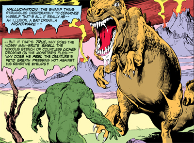 In a later chapter, Wein suggests that his body is a primal plant to such a degree that the creature’s conscious mind can’t entirely control it. He discovers, at one point, “I’ve stood in this spot so long… I’ve begun to take root…!” There’s very little indication that the creature is Alec Holland, only that he wants to be, and that he seems blind to the nature of his body through that idea he holds. His clinging to human identity – mourning Linda, angst over his secret formula – seems to be holding the monster back from something profound during Len Wein’s run. It’s fascinating that Alan Moore managed to tie together threads that wouldn’t have been noticed otherwise.