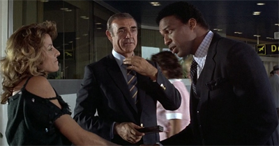 And yet, despite all that, there’s a lot to like here – even if the two accounts don’t necessarily settle up in the end. Sean Connery is much more convincing here than he was in Diamonds Are Forever. I’m fonder of his work there than most, but he was very clearly on auto-pilot. Here, Connery actually seems to care. While there’s grey in his hair, he looks a bit fitter and more in shape, and he gets the most out of his silky one-liners. Moore was the master at debonair one-liners, but Connery does a wonderful job too. “How reckless of me!” Fatima blushes. “I made you all wet.” Bond smiles. “Yes, but my martini’s still dry.”
