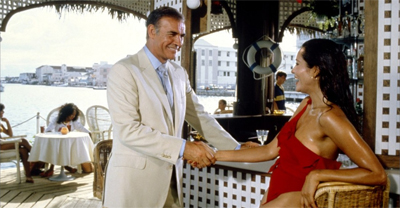 When Bond arrives on the yacht, he finds a henchman waiting for him. “Mr. Largo’s been expecting you.” Largo is quite proud of his plans as he boasts to Bond, because he clearly sees Bond as no threat to him – perhaps the most convincingly dismissive villain since Julius No all those years ago. Bond has to kiss Domino in order to catch Largo off-guard. He explains, “I’m going to kiss you. I want you to respond as if you liked it. I’m doing this for two very good reasons. One, because I’m hoping to provoke a reaction.” He certainly does that.