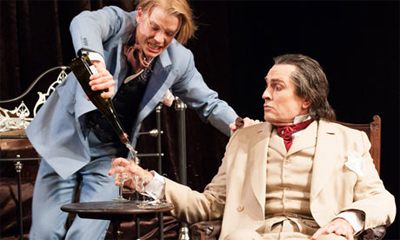 Wilde is a fascinating historical character. He is, after all, a writer whose works suggest a wit and intelligence that makes his ultimate downfall all the more difficult to explain. Wilde’s unique insight into class and culture, with his barbs couched in the most sophisticated and intelligent terms, would indicate that he must have known that he could never have won his case. The Judas Kiss features two acts, exploring two pivotal moments in Wilde’s life. The first act is set in Wilde’s hotel room before the police arrive to arrest him, and the second unfolds years later during his exile in Europe.