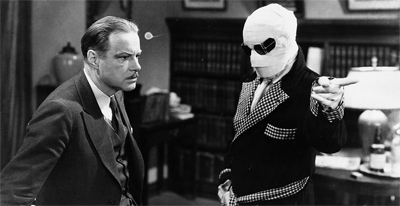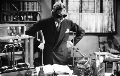 Author H.G. Wells famously complained that the Griffin presented in the film was far too unstable, compared to his literary creation. Whale responded that “in the minds of rational people only a lunatic would want to make himself invisible anyway.” As in Bride of Frankenstein, Whale makes it clear that not all science is inherently evil. There is “good science” and “bad science.” Cranley and Kemp, in their efforts to cure world hunger, are doing “good science.” Even before his transformation, Griffin was working on “bad science.”
