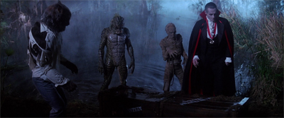 Dracula, on the other hand, is pure evil. The movie never really delves too deeply into the affection he seems to have for his fellow monsters, an angle that might have made him just a little bit more sympathetic or nuanced. Instead, as he wanders around in his finest dress wear, he just seems like a simply villain to be vanquished. It’s a shame, given how well the rest of the movie works, but I suppose it was inevitable given the necessities of plotting a movie like this.