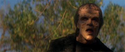 As played, superbly, by Tom Noonan, the monster is handled really well. It’s clear that the film holds a special affection for James Whale’s Frankenstein, even making sure to introduce the monster to Sean’s sister in a way that evokes the movie’s most famous scene. (Even Dracula seems to know the story well enough to acknowledge that the monster… might have some troubledealing with kids.) I also like the obvious use of lifts in Noonan’s shoes, an affectionate callback to Boris Karloff’s portrayal of the creature.