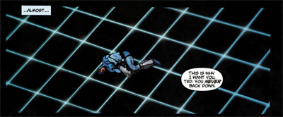 Even the Martian Manhunter, probably one of the most agreeable characters in the DC Universe, is rather pointedly cold to the Blue Beetle after he’s been seriously injured. He asks if Ted has recovered, prompting the Blue Beetle to reply, “I’m feeling better, if that’s what you’re asking.” It turns out that it wasn’t quite what J’onn had meant. He states, “Then you will be leaving.” Even after he was almost killed, Ted Kord is still a joke. He’s still far less serious than whatever “gigantic alien threat” or “rampaging space monster”is facing the real heroes.