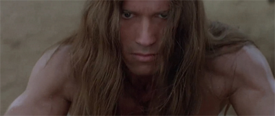 Conan the Barbarian plays as the story of a man coming to understand the universe. A lot of the character’s (admittedly limited) dialogue is decidedly inquisitive. Even exploring an old city, Conan is flush with questions for his guide. Encountering one particularly smelly alleyway, he asks, “Does it always smell like this? How does the wind ever get in here?” The sounds like it could be an insult, but Arnie plays it as sincere curiosity.