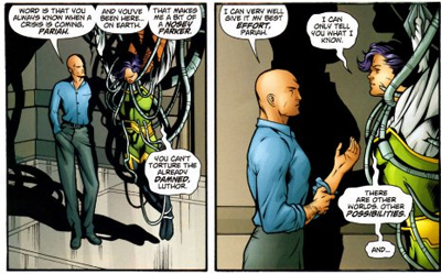 “Do you realise, Doctor,” Luthor asks rhetorically at one point, “that over a third of the most promising recruits for what we’re trying to accomplish have at least an aggressive, sometimes psychotic reaction to authority figures of all kinds? How will they respond if we become that authority?” In fact, the strike on Arkham is explained as a diversionary tactic, rather than a recruitment drive, because Luthor realises that most of Gotham’s resident psychotics aren’t exactly team-orientated individuals. “Arkham was always intended to be a distraction. Most of those ‘people’ would be unmanageable in our organisation.”