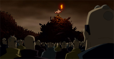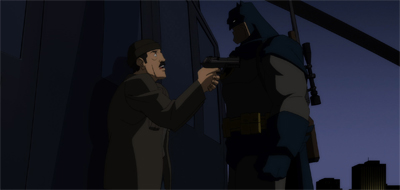 Jay Oliva’s direction is great. The animation shrewdly decides not to try and emulate Miller’s unique artistic sensibilities. This means, of course, we’re robbed of the physical transformation from Adam West’s Batman into Frank Miller’s Batman, but it gives the movie a more consistent feel. The Dark Knight Returns, Part I is probably the best-looking animated movie from Warners Animation, and it looks consistently fantastic. Oliva does a great job managing the media inserts, a part that I can’t imagine was easy to translate from the comics.