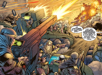 It’s hardly a subtle take on the War on Terror, but Gibbons portrays a conflict driven by an extremist religious viewpoint that seems in love with the concept of violence for its own sake. Gibbons knows that the metaphor won’t stretch too far (after all, there’s only so much you can really say about the realities of global politics in a comic book featuring hawkpeople), but it still gives the story a nice grounding. “Rann’s science caused this war,”Shayera accuses Adam Strange at one point, even setting up a conflict between religion and science similar to the one that has arguably been brewing within America for decades.