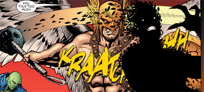 Hal Jordan, the poster boy for the Geoff Johns reimagining of the DC Universe, insists, “We need to get this out in the open and move on.” Johns resurrected Jordan, but he used him to tell fresh and exciting stories with the character, rather than simply reverting to the Silver Age status quo. Hawkman, perhaps the character who has suffered most from DC’s continuity reshuffles, replies, “It’s too late for that now.” Hal responds, in perhaps the story’s most optimistic moment, “It’s never too late.”