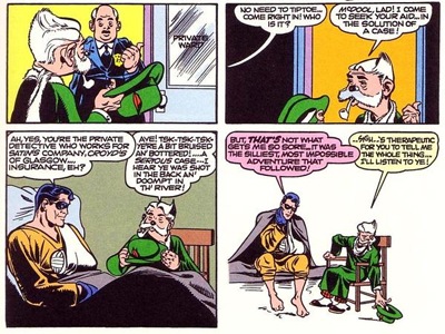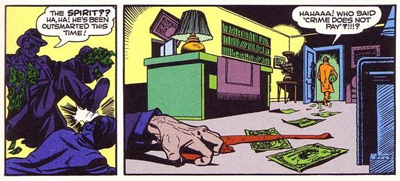 Perfect Crime suggests that it’s impossible to outrun the force of fate, even if you make it to some remote and forgotten island somewhere. In Escape, the Spirit explains his own theory of determinism to a confused Ebony, “And you are a prisoner of your own jail.” The Fortune sees Miss Eden racing against prophecy in a case of mistaken identity in an old gothic mansion. Of these stories, only The Fortune has a happy ending and – even then – it ends with the Spirit taking quite a beating.