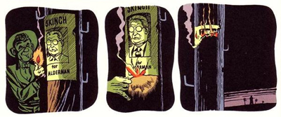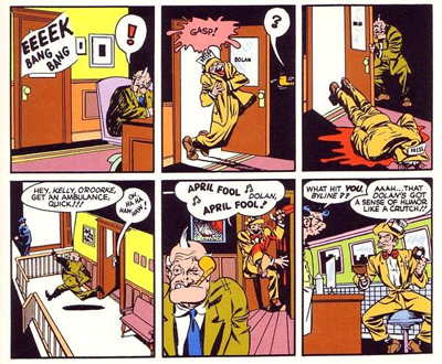 Just as Milton Canniff’s characters were identifiable by their perennial WASPish, upper middle-class look, so were Eisner’s identifiable by that look of just having got off the boat. The Spirit reeked of lower middle-class: his nose may have turned up, but we all knew he was Jewish.