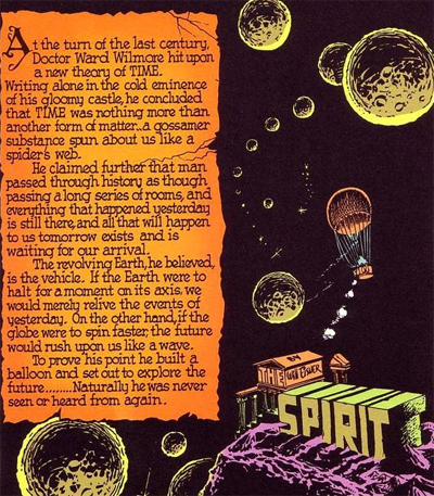 To be fair, it’s not really long-form storytelling. Even the two-part Hoagy the Yogi story is effectively two short stories anchored by a similar concept. (The second part uses the rather clever device of postcards narrating otherwise silent pages.) Eisner prevents the continuity from ever getting too heavy, and makes sure that the reader knows everything they might need to on getting into the story at hand. The intro page to The School for Girls is effectively a recap page, with P’Gell and the Spirit interacting playfully. (“You? Ha, ha, ha! P’Gell!!! A headmistress of an exclusive girl’s school — haw, haw!”)