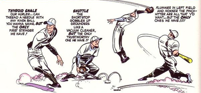 On top of the extended use of space on the opening page, the stories here carry a bit more weight than usual because they contain some measure of shared continuity. Discounting the two-part Hoagy the Yogi, many weekly strips lead directly into one another. While storylines aren’t necessarily continued from one week to the next, they are built upon. Saree leads directly into The School for Girls. Silken Floss appears in A Granule of Time before getting a character-focused story in Silken Floss, M.D. The crime from April Fool bleeds over into Pinhead.