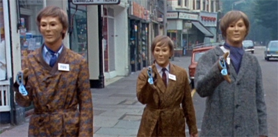 In particular, Holmes very effectively manages to find that perfect balance of the banal and the terrifying – scaring the audience with the threat of something that we pass everyday. Thanks to Spearhead from Space and its sequel, Terror of the Autons, the image of the lumbering killer plastic dummies has become an iconic part of British television history. It was at this point that the moral guardians would begin to notice the show, and complain that it was corrupting the youth with images of violence and horror. I think that a lot of that effective approach to what might be termed “the banality of horror” can be traced back to here, with the eerie sight of a doll factory under alien control, a wax museum that comes to life, a murderous doppelgänger made of an inorganic material.