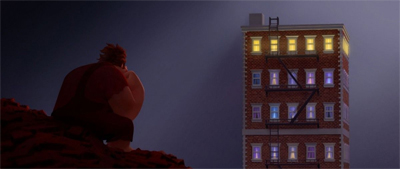 It’s an interesting and relatively brave stance for the film to take – the notion that just because a position is not glamorous doesn’t mean that it isn’t necessary. The story is fairly explicit that Ralph’s absence won’t mean good things for the residents of his gaming universe, and while his existence might not be ideal (and their treatment of him might be wanting), he does perform an important function in the grand scheme of things. It’s a more complex idea than most animated films go for, and I like that aspect of Wreck It Ralph.