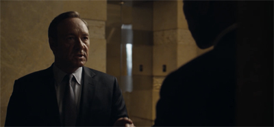 More than that, though, the second episode establishes that Frank is swimming like a shark. He might seem like an over-confident hustler and manipulator, but he’s vulnerable and has to keep moving. Underwood is in debt to lobbyists, lobbyists who are less than pleased about his recent political shortcomings. Indeed, their threat to “throw money at” any challenger in his district makes it clear that Underwood is not the invulnerable master manipulator that we might think that he is.