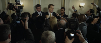 The show is still having a bit of trouble with Zoe, but at least it isn’t making so many cheap shots about the noble integrity of print journalism as compared to the sleazy exploitation of on-line blogging. There’s still a moment of hesitation when Frank asks her to run an unverified story. “There’s no direct link,” she protests. “I can’t get this past Hammerschmidt.” Because, you know, no newspaper has ever published a story that was questionable. It’s only on-line journalists who do that, the show seems to suggest.