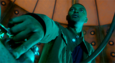 On the other hand, Noel Clarke gets to do some good stuff here as Mickey, really extending the character a great deal. The explanation for his insecurity and inferiority complex make sense, and his sense of guilt over the accident that killed his grandmother is understated and effective – immediately giving us a hook into a character who has been fairly underdeveloped. On the other hand, Clarke’s performance as Rickey isn’t quite as solid. It’s clear he’s aiming for a bunch of macho clichés, but Clarke can’t quite pull them off, making Rickey look more silly than badass. (Although Clarke does a great job with the revelation in the next episode that he is “London’s most wanted” for parking tickets.)