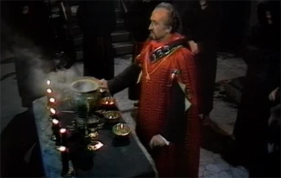 Indeed, the influence of Crowley is quite keenly felt on The Dæmons. The Master, it appears, is quite a fan, even offering his own twist on one of Crowley’s famous moral proclamations. “To do my will shall be the whole of the law,” he states, thinking that perhaps Crowley’s rhetoric needed a bit of a tweak. It’s also worth noting that the Master’s mystical chant is Mary Had a Little Lamb recited backwards. It’s a nice little moment, because it also seems to foreshadow the “satanic backmasking” controversies that would become popular in the 1980s in the United States.