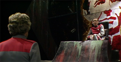 That makes for quite a change from the usual portrayal of a human society that spans the cosmos, is colonising other worlds as explorers rather than refugees, or even a humanity recovering from a great catastrophe. The settlement in Frontios is not recovering. It’s surviving – at the very best. People are dying, and the settlers can’t put down roots to grow. There’s a constant siege mentality, and the entire planet is controlled by a military dictatorship – one on the verge of becoming absolute monarchy. “Are you suggesting that the son of Captain Revere is unfit to rule?” Brazen demands, never making any suggestion of why Plantagenet is fit to rule, beyond his seeming birthright.