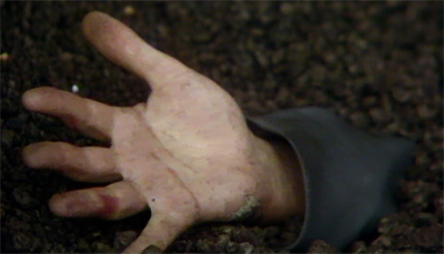 Even when alien involvement in the plot becomes obvious, it’s a bit more grim than usual. The Tractators’ methods of pulling a host through the soil would have seemed perfectly at home in the gothic Hinchcliffe era of the show, capturing the primitive fear of being buried alive. Here, however, they don’t just represent that very basic fear, but they also represent something far more depressing – the idea of the world consuming us, the notion that we will be absorbed and completely forgotten by the very planet we live on. “The earth is hungry,” Turlough rambles in his trance, “It wants to eat.” In fact, Turlough’s almost-insane mumblings come across as slightly cheesy, but they’re also effective. They are genuinely creepy. “I can see them. They are the appetite below the ground.” The idea of a world that “buries its own dead” is a very juicy, very scary one – and it’s the thought that this might be the final resting place for us as a species is an unsettling one.