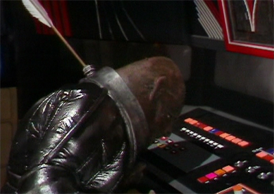 When the Doctor mentions that his weakness is the “probic vent” on the back of his neck, Linx tries to make it sound like a distinctly noble attribute. “In our case, Doctor, it is a strength,” he boasts, “because it means we must always face our enemies.” That sounds more than a little bit silly. After all, any military leader will acknowledge that sometimes retreat is necessary. We also learn that the Sontarans apparently aren’t as adept at warfare as it might originally seem.