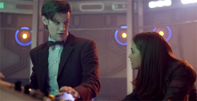 As a Davies/Pertwee homage, it’s the perfect place to introduce a new companion, because of course the companion has to be from contemporary Great Britain. Still, there’s a sense that Moffat is playing with quite a few of the narrative devices that Davies frequently used in his stories about contemporary London. (After all, Moffat has generally steered quite clear of threats to contemporary London.) It even opens with a shot of Earth from orbit.