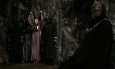 Like everything else int his serial, Drax is a half-decent concept executed terribly. I quite like the idea of a Cockney Timelord, in contrast to the more staid officials we’ve seen since The War Games. Drax seems almost like a Timelord version of Delboy, providing an interesting contrast with the Doctor. The Doctor might be a rogue, but he certainly has stronger ethics than Drax’s “buy a bit, do it up, sell it” philosophy. I like the fact that he wears runners with he future jumpsuit as well, suggesting that all Timelords have a little bit of fashion eccentricity. (The robes on Gallifrey either ride or demonstrate it, depending on your perspective.)