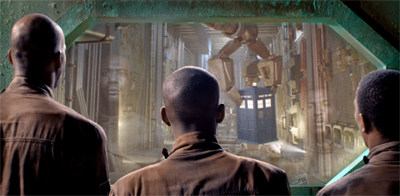 So the episode, appropriately enough, suggests that the fictional fabric of the show is somewhat malleable, prone to distortion. When the TARDIS punishes the salvage team for stealing one of the glowing orbs, it doesn’t just lock them in a room. “No point in building walls, you’ll just know how to smash them down,” the Doctor boasts. “It found new ways to control you.” It doesn’t treat them as a hostile force.