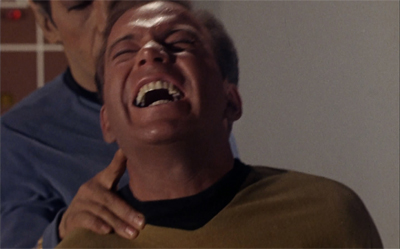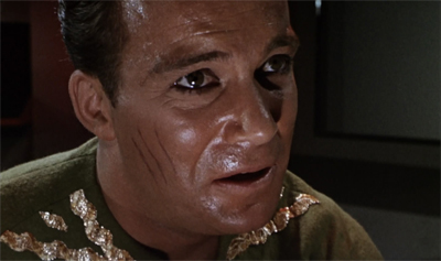 One which is, admittedly, overshadowed by his campy turn as evil!Kirk. Even then, it’s work noting that Shatner’s portrayal of Kirk’s rampaging id personified is strangely compelling. As I mentioned above, it’s fair to argue that Shatner’s reputation of a hammy over-actor was cemented here. evil!Kirk poses, pantomimes, screams, spits and shouts. You could make a legitimate argument that evil!Kirk isn’t just a concentration of Kirk’s darker side, but also the embodiment of Shatner’s tendency to go over the top.