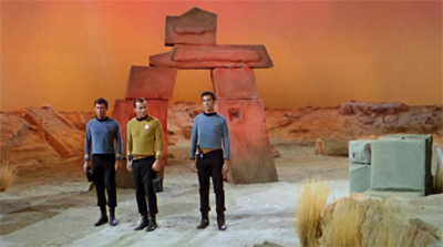 Star Trek seems to start in that sort of frame of mind. Although the presence of nearby desert undoubtedly made it easier to shoot “location work” for episodes set on arid planets, even the studio sets for Star Trek seem to suggest the universe is populated with dead and dying planets. There’s nothing as exotic as the studio-set jungle planet that Star Trek: The Next Generation would showcase in Arsenal of Freedom. When Gary Mitchell wants life on other worlds in Where No Man Has Gone Before, he has to create it. In Shore Leave, it is made clear that a world so idyllic is relatively rare.