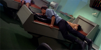 Here, Riley is the only character who seems like he might be drunk. Instead, everybody else seems to simply have their inhibitions lowered. They do things that they would never do under normal circumstances. Sulu dodges work, first to go to the gym and then to play swordsman. (“Light workout will take the edge off,” he explains, as if his actions are in response to some external pressure.) Nurse Chapel tells Spock that she loves him, despite the fact that we’d discover she has a fiancée in What Are Little Girls Made Of? Spock announces that he loves his mother, something no self-respecting Vulcan would do under normal circumstances.