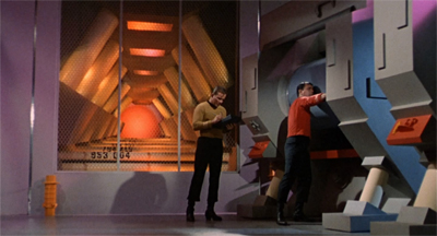 The Naked Time is about the breakdown of order. Kirk spots “SINNER REPENT” scrawled on a turbolift door, a fairly common doomsday proclamation. Apparently, the infection itself is as a result of water breaking down, of the molecules collapsing and reforming in some strange manner that seems contrary to the natural order of things. “It’s water,” McCoy explains. “Somehow on this planet, water’s changed to a complex chain of molecules.” It doesn’t make any scientific sense, but it’s rife with symbolism. Things fall apart; the centre cannot hold; Mere anarchy is loosed upon the world. That applies to molecules as much to Spock’s sanity as much to the Enterprise itself.