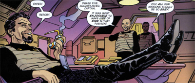 If Pawns of War has a problem in terms of structure, it’s an over-reliance on continuity, which sounds funny when you’re talking about a story very clearly woven between existing episodes of the show. However, while those episodes provide a context that Byrne structures into his story, there is a sense that the universe is very small. Everybody knows everybody. The presence of Kor and Koloth, as much fun as they are, is an example of this, albeit a mild one.