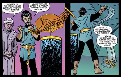 The real problem is that the story is anchored in the family of a character who died at the end of Balance of Terror, with the son holding a grudge against James T. Kirk. However, since Kirk never appears, that grudge never pays off. At the climax of Schism, when the stakes seem to be getting very real, Byrne draws in the Organians from Errand of Mercy.