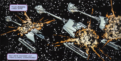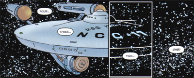 Byrne also indulges his own Star Trek preferences here. When the final three-issue miniseries, Schism, draws in the Federation, Byrne uses Number One as the protagonist of his story. He puts her in command of a starship with the cloaking device stolen in The Enterprise Incident, giving her the rank of Commodore so as to slyly subvert that infamous line from The Turnabout Intruder. The joke, of course, being that there may not be any female captains, but there are female officers who outrank captains.