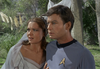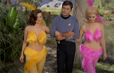 However, the show doesn’t allow Kirk to be the only officer with a sexual life of his own. In fact, it’s Leonard McCoy who gets to play the romantic lead here, flirting with the female member of the away team (“…then you’d have whole armies of Don Juans to fight off,” he advises her, “and me, too…”) and imagining “two girls in the chorus line” from a distant memory. The planet in Shore Leave seems to function like the holodeck in Star Trek: The Next Generation, but that spin-off was always a little cagey about the idea that some of the crew might have less-than-wholesome fantasies. The original Star Trek is able to embrace it at face value.