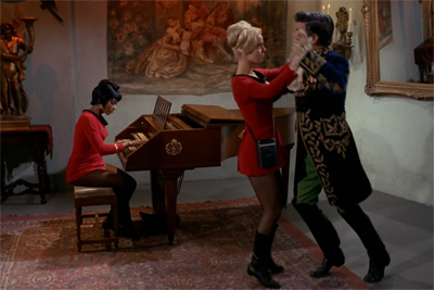 It also helps that The Squire of Gothos is relatively subtle in its commentary. In a nice touch, Trelane tries to politely greet each of his guests using what he determines to be their language or customs. He bows in deference to Sulu. He speaks German to Jaeger. Neither is especially impressed. Sulu seems to find it quaint (“is he for real?”) while Jaeger seems put off by Trelane’s military pageantry. It’s a nice way of illustrating that a lot of the old cultural barriers are gone, much like George Takei’s choice to use a fencing sword rather than a samurai sword in The Naked Time.