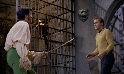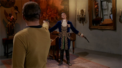 There are lots of nice touches that have probably aged better than they were intended to. It’s hard to believe that anybody working on Star Trek in 1966 or 1967 suspected just how much of a pop culture phenomenon the show would become. And yet, despite that, Trelane feels like a spot-on parody of “super-fans” or of collectors. Of course, unlike Melllvar in Futurama‘s Where No Fan Has Gone Before, Trelane is a “fan” of Earth culture rather than Star Trek itself, but it’s still a nice plot point.