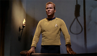 Still, the execution of The Squire of Gothos is quite wonderful. Don McDougall does a wonderful job directing the episode. The whole production looks lavish and fantastic – including the sets and the costuming. The trial scene is shot especially well, with McDougall adopting an approach that is almost expressionist as Kirk stands in the dock, with the nose depicted in silhouette against the back wall of the sparse courtroom. (It helps that Campbell is having a wonderful time, banging his gavel.)