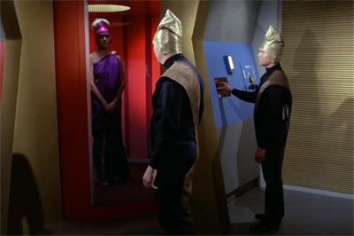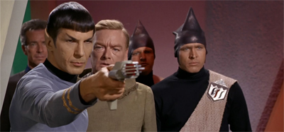 To be fair, A Taste of Armageddon lacks the eye-catching weirdness of its direct predecessor. Don’t get me wrong, there’s an appealing array of pulpy elements to be found here – proto-Klingon disrupters! funky hats! sashes! However, it’s really hard to compete with the surreal experience that was Return of the Archons. Watching an old-timey community descend into an orgy of debauchery while controlled by killer monks directed by a sharply-dressed ghost is really quite hard to beat in the “wackiness stakes.”