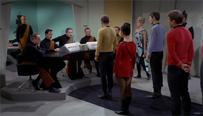 A Taste of Armageddon is particularly reflective of Cold War mentality. With a rising reliance on destructive technology, the episode suggests a possible future for 1960s earth. The war operated by computers is analogous to a war run without weapons: a Cold War, one which dominates everyday life, but one whose absurdity is clear to everyone else but the participants. The horror of this episode has less to do with a 500-year war and more with the ways in which the citizenry of Eminiar VII, and presumably Vendikar, accept their roles in it. These are people with a “high consciousness of duty,” who willingly give up their lives not in combat, but because a computer program has dictated such action. War is taken out of its context of violence and replaced with a context of destructive bureaucratic efficiency.